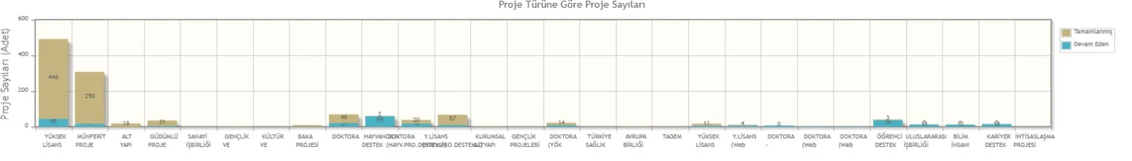 Üniversite geneli proje türleri dağılımları