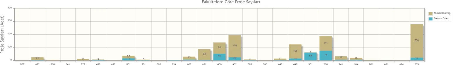 Fakültelere/Bölümlere göre proje dağılımları